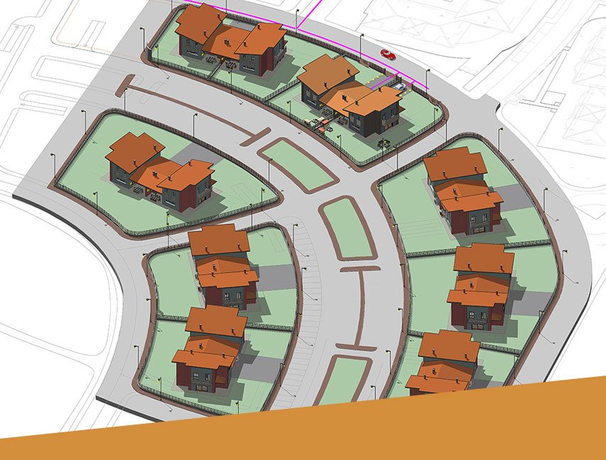 Nuovo complesso residenziale all'interno dell'area di nuova espansione urbanistica denominata Alessandria 2000 costituito da edifici mono e bifamiliari sviluppati su due piani